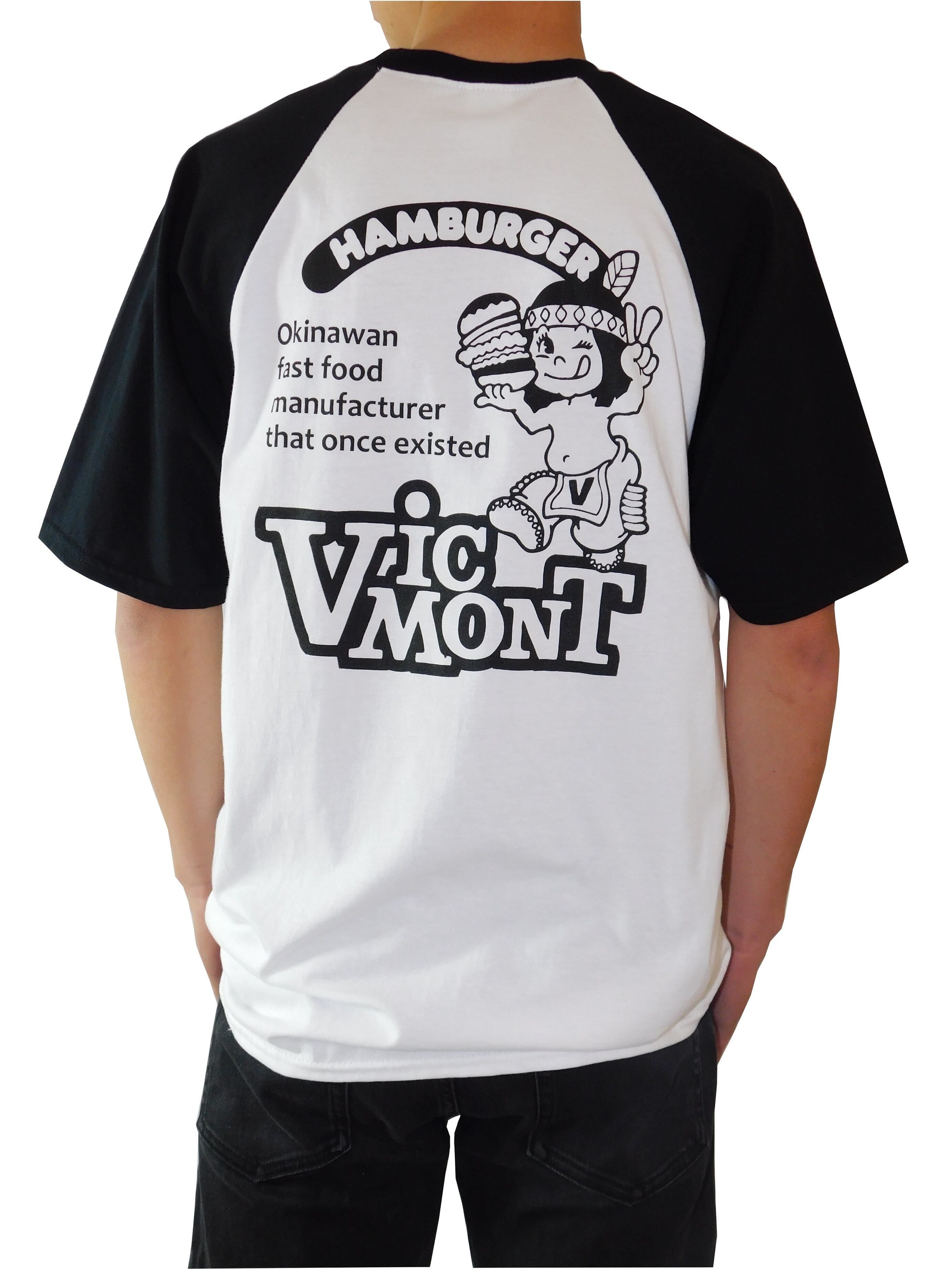 メンズビクモンバーガーT ラグラン袖(ホワイト×ブラック)7-621